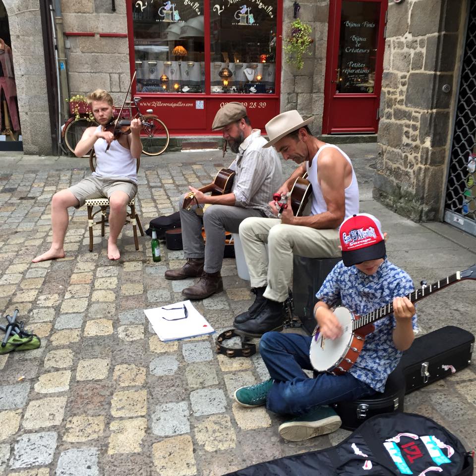 Busking on the streets of Dinan with the lickers …